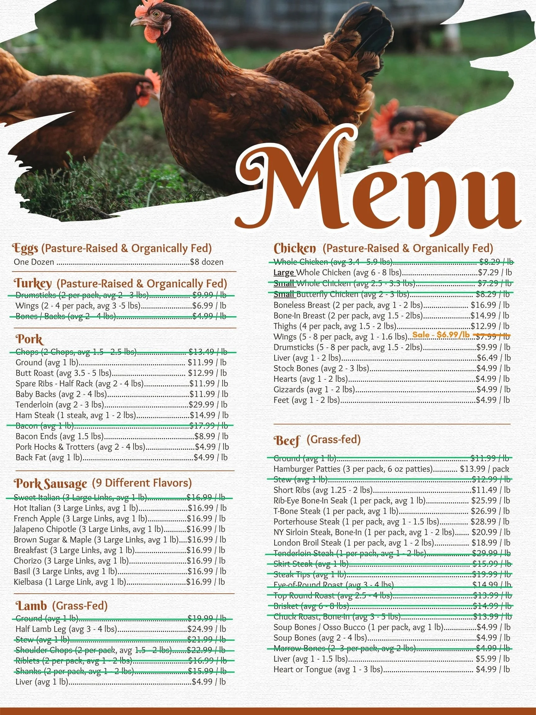 Items are on a first come, first serve basis until it sells out. Our existing/regular customers who have previously shopped with us & our CSA Share members are also served first. We try to accommodate everyone as best as possible and we try our best to keep our menu updated regularly as items sell out.